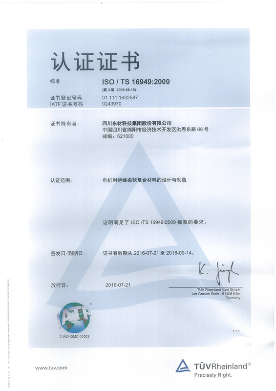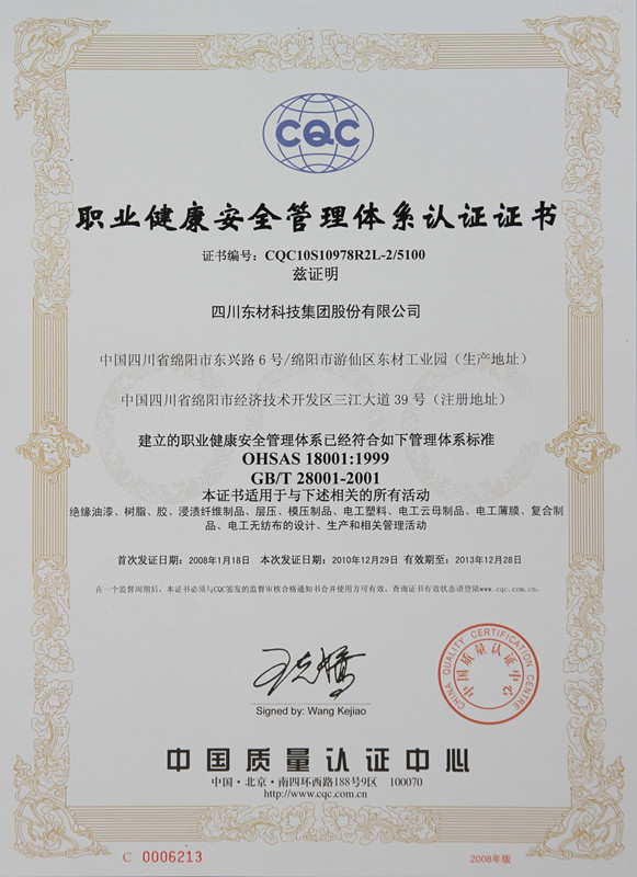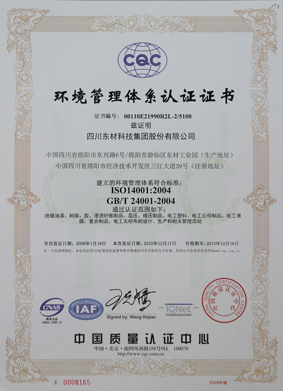東材科技在國內(nèi)同行業(yè)企業(yè)當中率先通過國際ISO9001的質(zhì)量體系認證,通過ISO10012國際計量體系、ISO14001環(huán)境管理認證體系、OHSAS18001職業(yè)健康安全體系、GBT 29490知識產(chǎn)權管理體系、GBT23331能源管理體系認證企業(yè)、IATF16949汽車質(zhì)量管理體系認證,不僅使公司產(chǎn)品質(zhì)量保障體系達到國際化的新標準,而且為產(chǎn)品質(zhì)量的穩(wěn)定提供了強有力的保障。